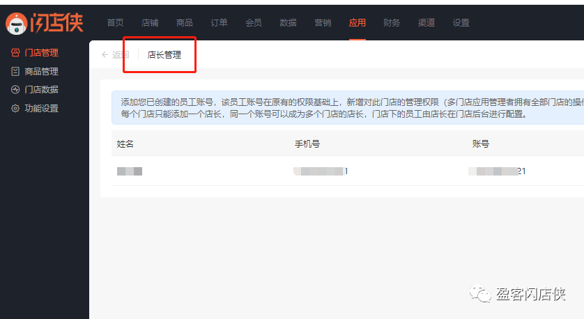 ▲ “店长”可以在门店子后台添加该门店下的员工,操作和总店铺相同;