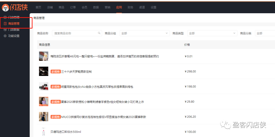 商品管理:业务端对门店商品进行统一管理,如上述【商品设置】