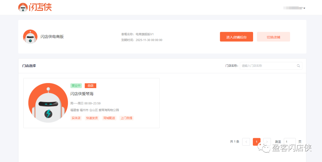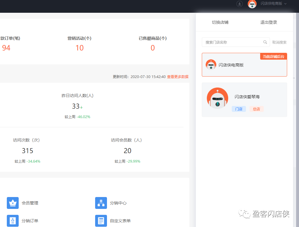 2、总店铺后台首页切换门店