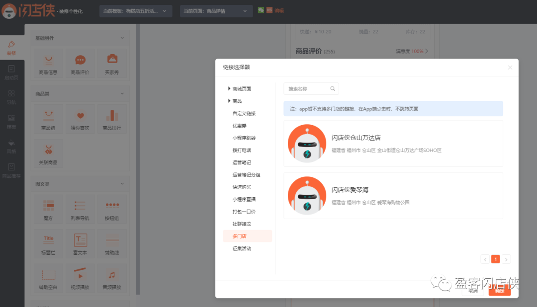 ▲ 当前版本的多门店系统,不支持分门店装修,用户进入商城展示的界面均和“总店铺”的装修策略一致;
